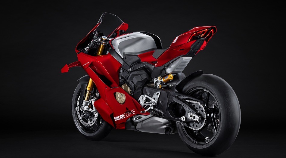 Öhlins suspension, Lithium-ion battery, Quick adjustment buttons, Forged aluminium wheels, Coming Home, Single seat configuration, Ducati Power Launch (DPL) DVO, TFT colour display, Full LED lighting system, Full LED headlight, Daytime Running Light (DRL), Self cancelling turn indicators, Lap Timer, Pit Limiter, Rear susopension rod with adjustable length, Ducati Racing Gearbox (DRG) with Ducati Neutral Lock (DNL), Ducati Quick Shift (DQS) up/down 2.0, Billet aluminium steering stem with bike number, Öhlins SD20 steering damper