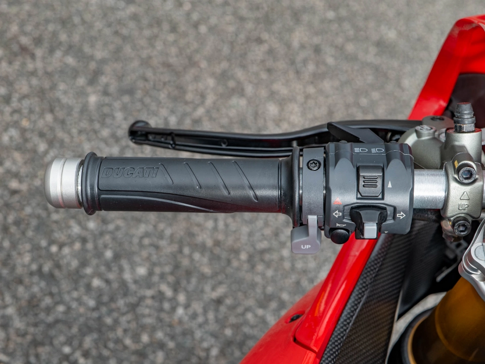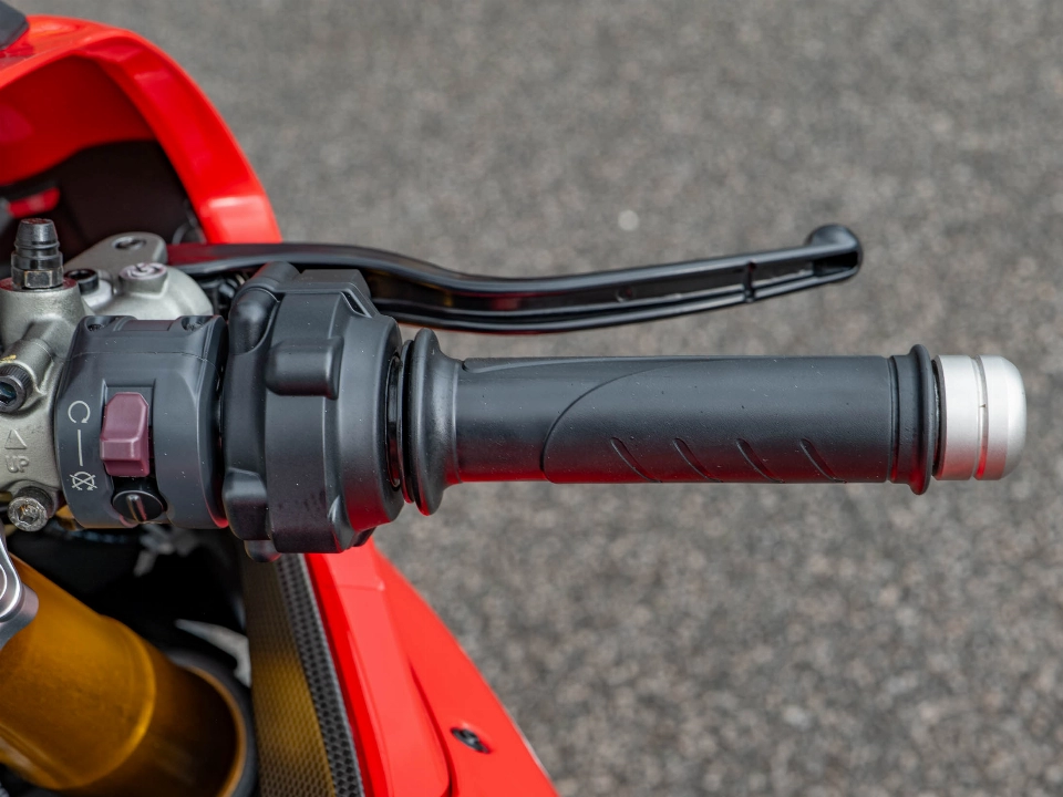 The specification on this particular Panigale R is enhanced by a titanium Akrapovic exhaust system, which provides a thunderous soundtrack and a significant weight saving over standard. The bike is packed with advanced rider technology governed by a 6-axis IMU, including cornering ABS, traction control, and wheelie control, all of which are easily managed through the various riding modes. For those looking for the ultimate track or road weapon, the inclusion of a bi-directional quickshifter and an adjustable steering damper makes every gear change and high-speed manoeuvre feel effortless and stable.