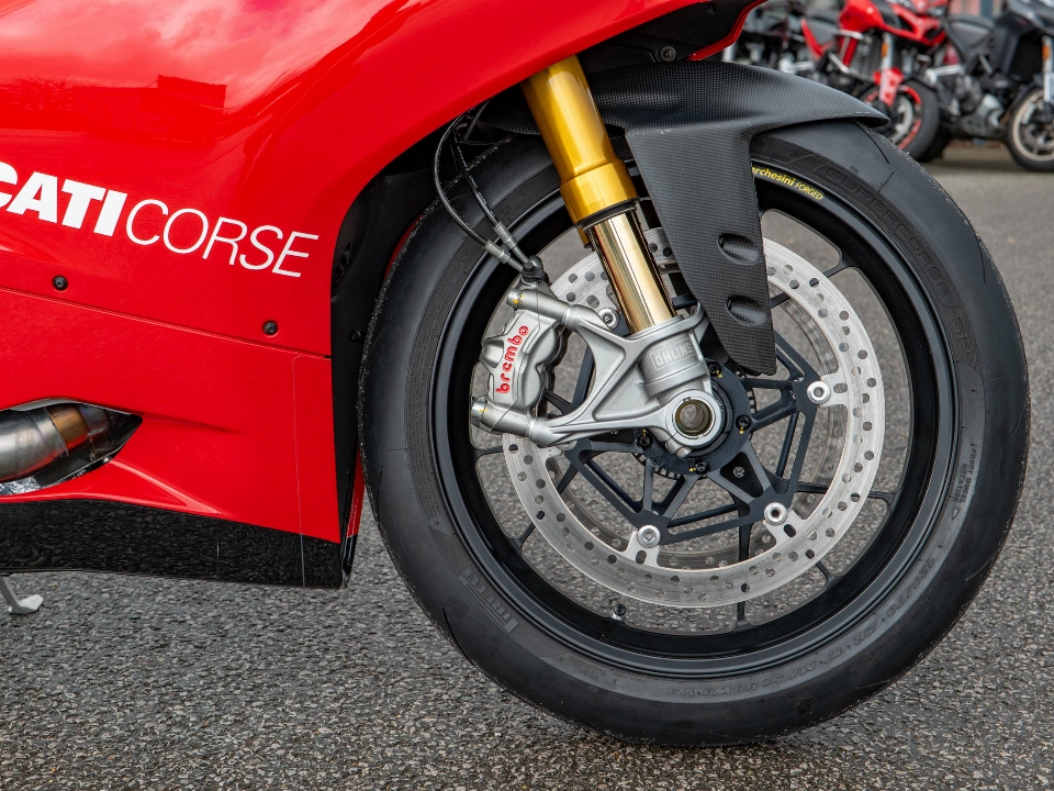 Riding the 1299 Panigale R is a visceral experience that connects you directly to Ducati's racing soul. Despite the 1299 naming convention used for the road-going S models, the R version utilizes the specialized 1198cc Superquadro engine to meet world championship regulations, producing an incredible 205 hp. The feel is uncompromisingly sharp, with the lightweight monocoque chassis and premium suspension working in harmony to provide surgical precision through corners. The addition of Paint Protection Film (PPF) on this example ensures the striking bodywork remains shielded from the elements, while the lightweight construction makes it feel exceptionally agile and responsive.
