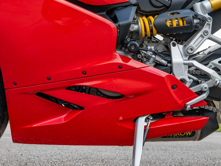 The heart of the 959 is the 955cc Superquadro L-twin engine, producing a potent 157 hp. This engine was developed to provide a broader powerband and more usable torque than its predecessor, the 899, ensuring that the 157 hp output is accessible whenever you need it. The bike features Ducati’s signature monocoque chassis, which uses the engine as a stressed member to keep the weight remarkably low and the handling incredibly precise. With its side-mounted twin mufflers (a signature of the Euro 4 era) replaced on this example by a premium Arrow performance exhaust, this 157 hp twin emits a deep, racing growl that is pure Ducati.