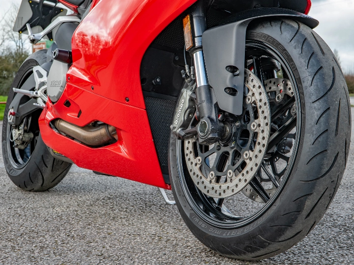This 959 Panigale has been thoughtfully equipped with high-value extras for the modern rider. It features a Quadlock phone mount for easy navigation and heated grips for year-round comfort—a rare but welcome luxury on a superbike. For peace of mind, it is fitted with crash bobbins and paddock stand bobbins. The factory electronics suite is world-class, featuring the Ducati Quick Shift (DQS), Bosch ABS, and 8-level Ducati Traction Control (DTC), all of which work seamlessly to manage the 157 hp power delivery. A factory-fitted steering damper ensures the front end remains composed even under hard acceleration.