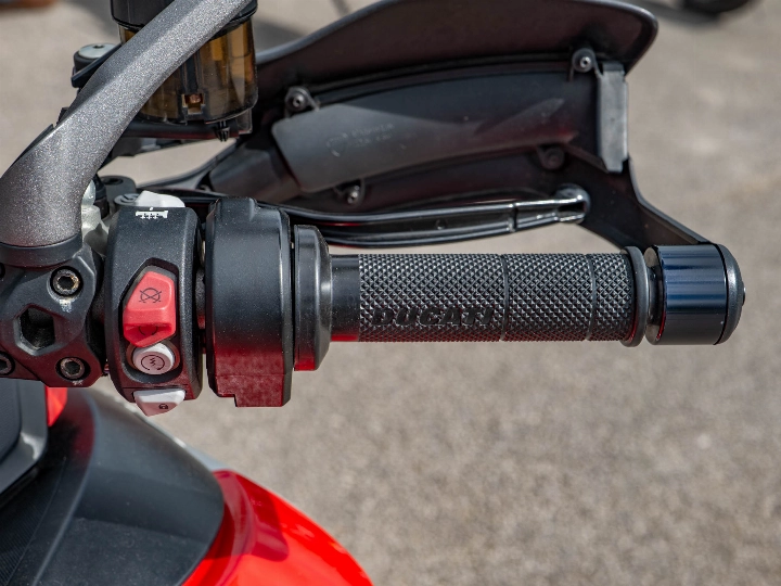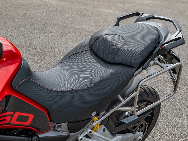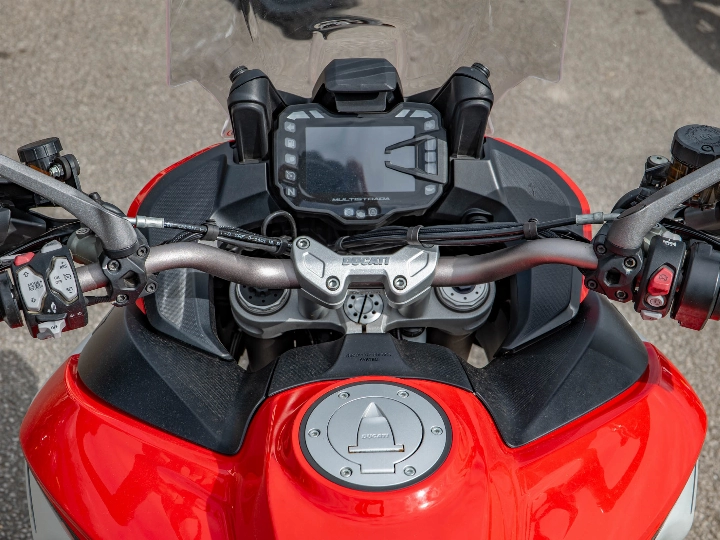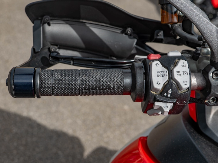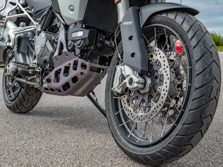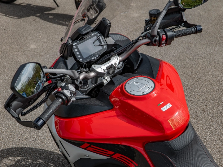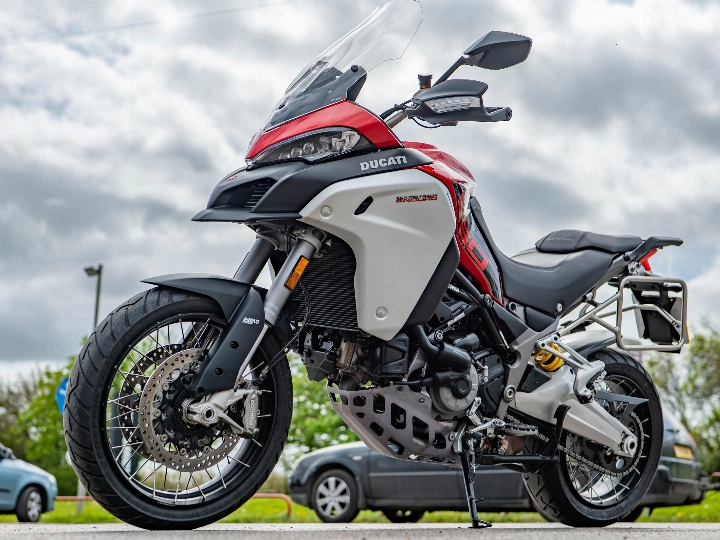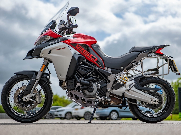 Riding the 1260 Enduro is a masterclass in versatility, aided by the Ducati Skyhook Suspension (DSS) Evolution system which automatically adjusts damping to suit the terrain. Despite its size, the bike offers incredible control thanks to its refined ergonomics and a comprehensive electronics package that includes a bi-directional quickshifter, cruise control, and cornering ABS. The high ground clearance and reinforced sump guard ensure the 158 hp motor is well-protected, while the keyless ride system adds a layer of modern convenience to every journey.