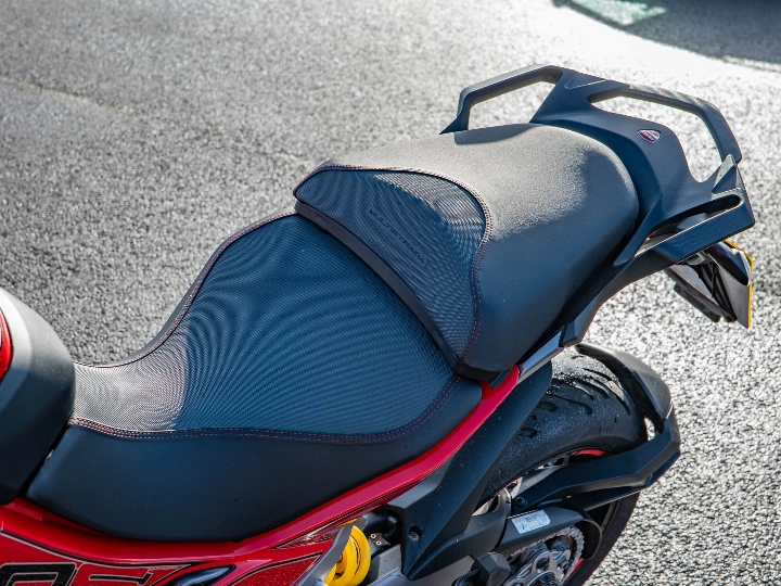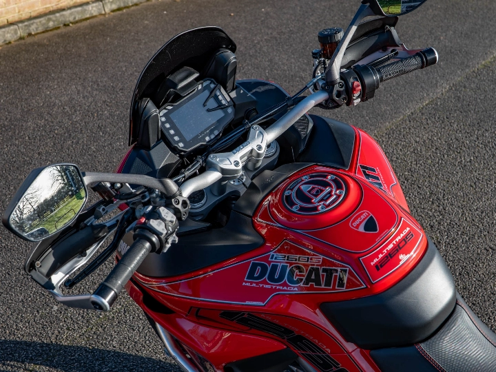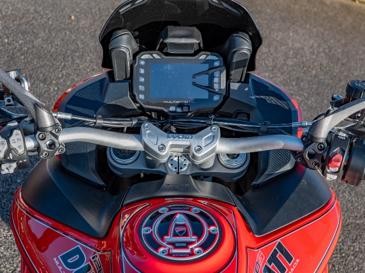 Riding the Multistrada 1260 S is a transformative experience that perfectly captures Ducati's "four bikes in one" philosophy. The 1262cc Testastretta DVT engine produces a formidable 158 hp, with the variable timing system ensuring a smooth, torque-rich delivery throughout the rev range. What truly sets the S model apart is the Ducati Skyhook Suspension (DSS) Evolution, a semi-active system that constantly monitors road conditions and rider inputs to adjust the damping in real-time. Whether you are navigating tight mountain hairpins or eating up motorway miles, the bike remains impeccably composed and comfortable, while the up-and-down quickshifter allows for effortless gear changes.