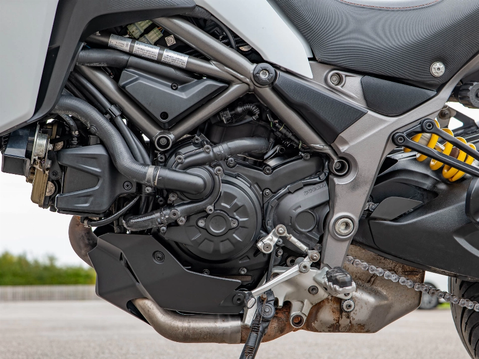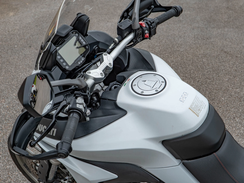 The Multistrada 950 is the perfect "do-it-all" Ducati, powered by the renowned 937cc Testastretta L-Twin engine which delivers a flexible and engaging 113 hp. This output provides ample performance for spirited riding while remaining manageable and comfortable for long-distance touring or daily commuting. The bike’s adventure DNA is evident in its long-travel suspension, comfortable ergonomics, and comprehensive electronic package.