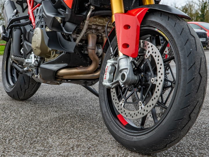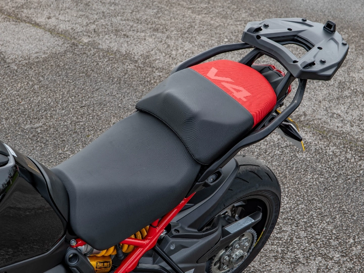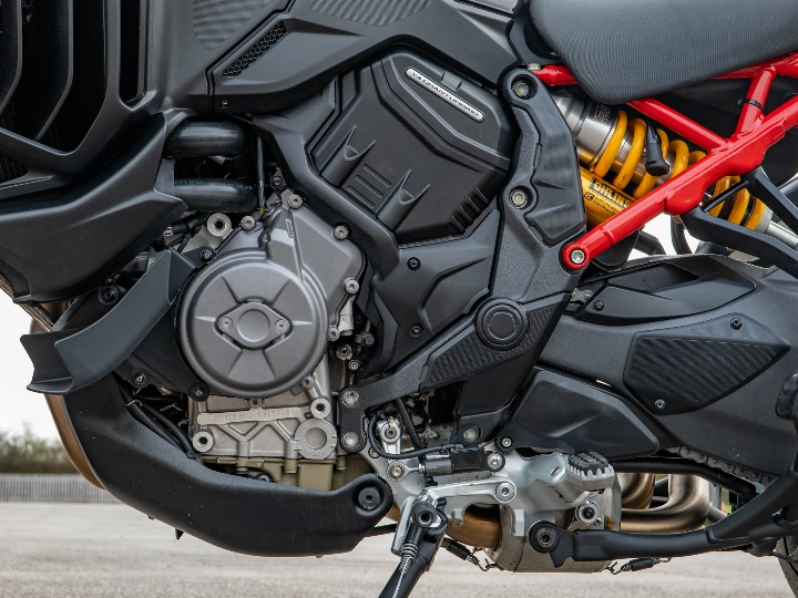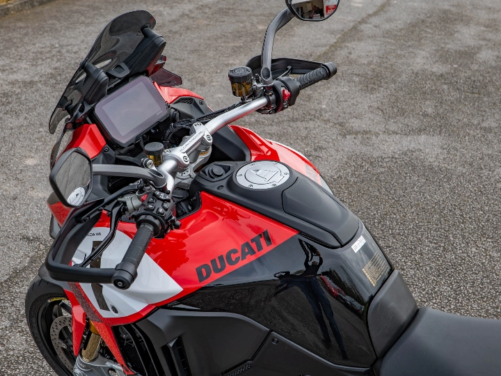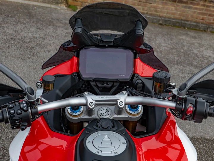 The Pikes Peak is essentially a Panigale in a touring suit. It features world-class Öhlins Smart EC 2.0 semi-active suspension, providing "event-based" damping that adjusts in real-time to your riding style. Braking is handled by top-tier Brembo Stylema monobloc calipers, identical to those found on the Panigale V4. This 170 hp machine is also a technological powerhouse, equipped with front and rear radar for Adaptive Cruise Control and Blind Spot Detection, alongside a bi-directional quickshifter and keyless ride.