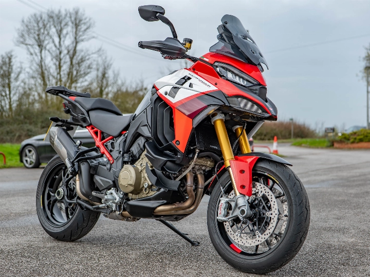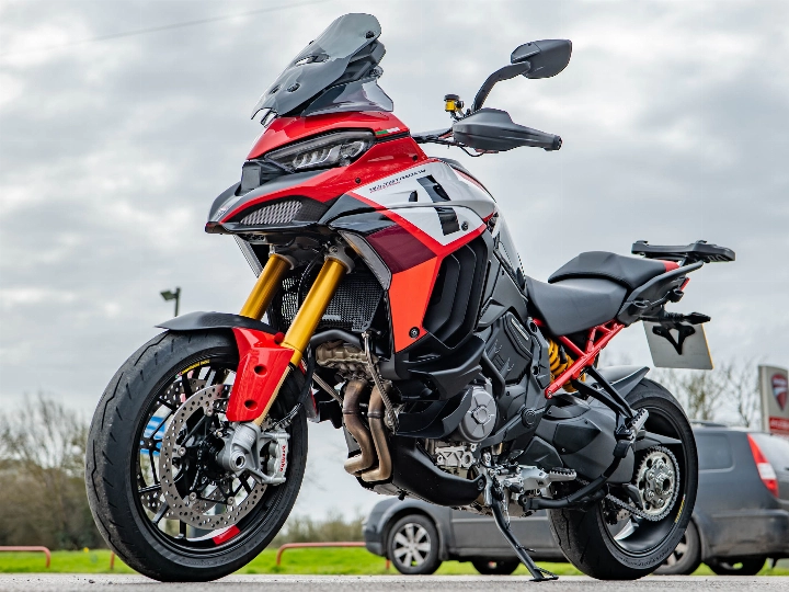 The 170 hp summit of sport-touring, a pristine 2-owner 2022 Ducati Multistrada V4 Pikes Peak with 6,400 miles. Available now at On Yer Bike / Ducati Aylesbury, this 2022 Multistrada V4 Pikes Peak is the most focused and aggressive iteration of the Multistrada platform. Having covered 6,400 miles under its two owners, this machine is in very good condition and comes with a full service history. While the standard V4 is a master of all trades, the Pikes Peak is designed with a singular mission: to be the sportiest, most precise "crossover" bike on the planet, delivering a staggering 170 hp with the handling of a superbike.