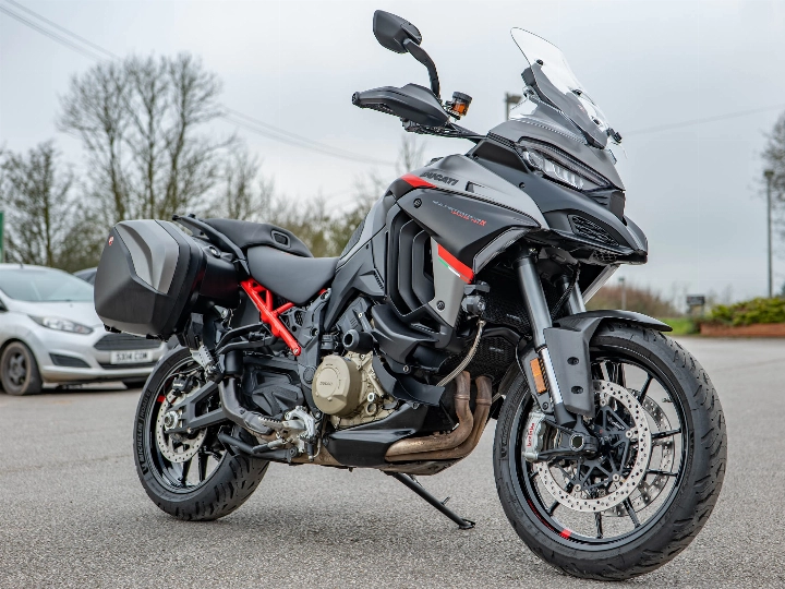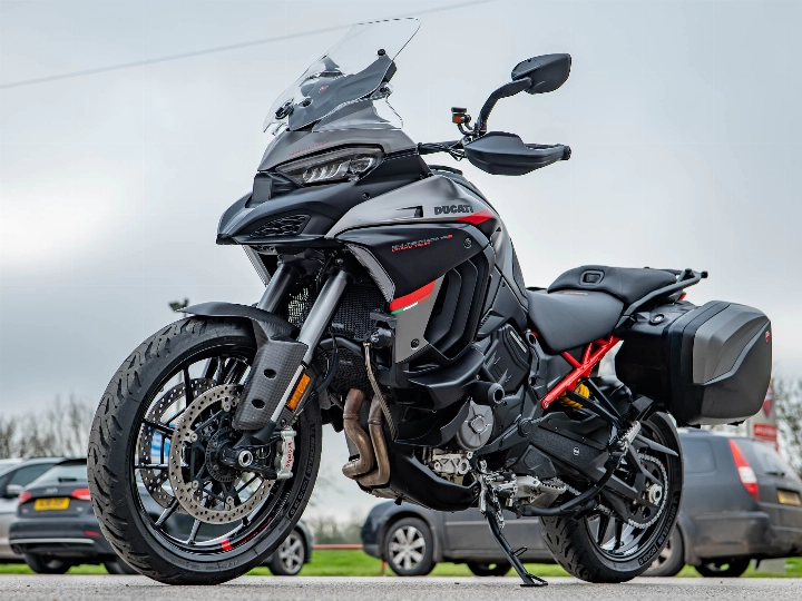 Radar-guided cruise control, 170 hp V4 engine, and rare Grand Tour specification. Available now at On Yer Bike / Ducati Aylesbury, this 2024 Ducati Multistrada V4 S Grand Tour is a spectacular one-owner example of the ultimate cross-continental adventurer with 11,734 miles on the clock. Finished in its dedicated Grand Tour Grey livery, this machine has been meticulously cared for and features a high-end ceramic coating to preserve its finish. With its full service history and superb condition, it represents a significant saving over a new model while offering the highest level of standard equipment ever fitted to the Multistrada platform.
