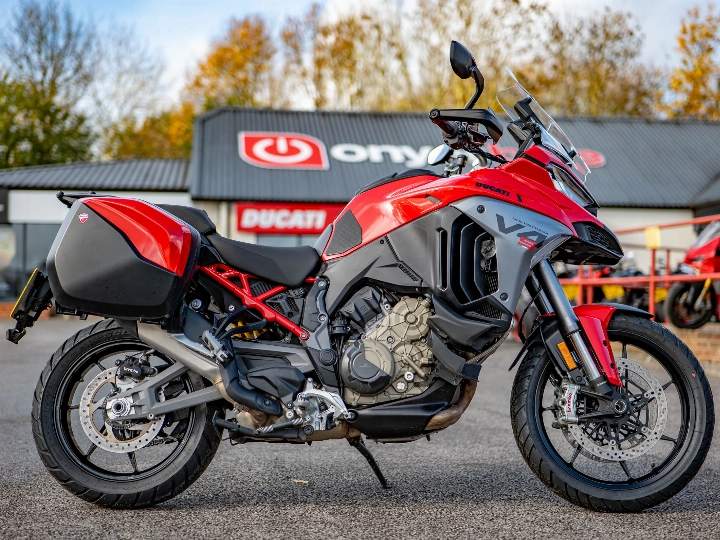 This highly specified, low mileage adventure-sport bike is available to view at On Yer Bike / Ducati Aylesbury, your official Ducati dealer near Aylesbury, UK. This used motorcycle is supplied with the remaining manufacturer warranty, giving you confidence in your purchase. Contact our dedicated sales team today to secure this thrilling V4 S Sport.