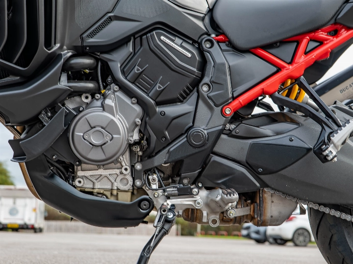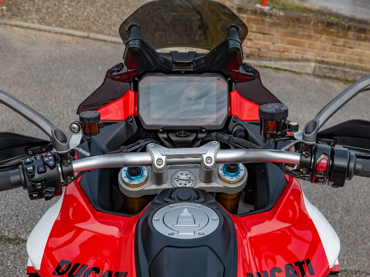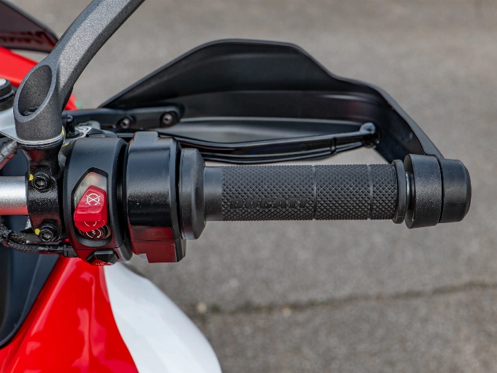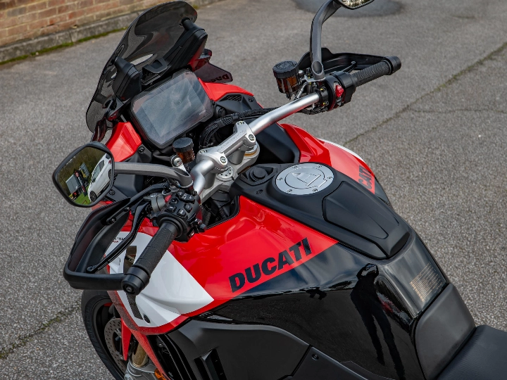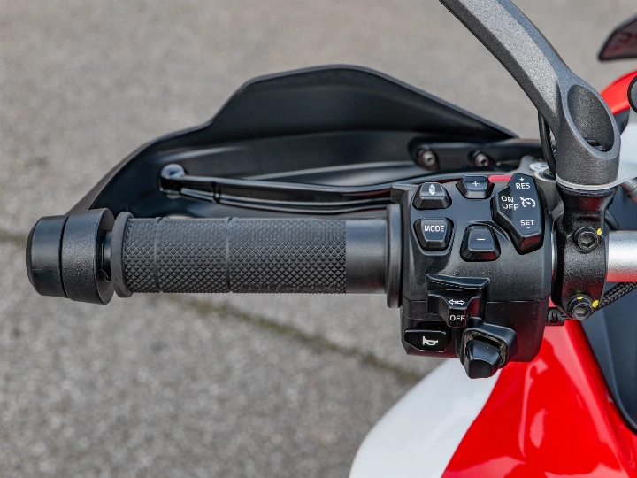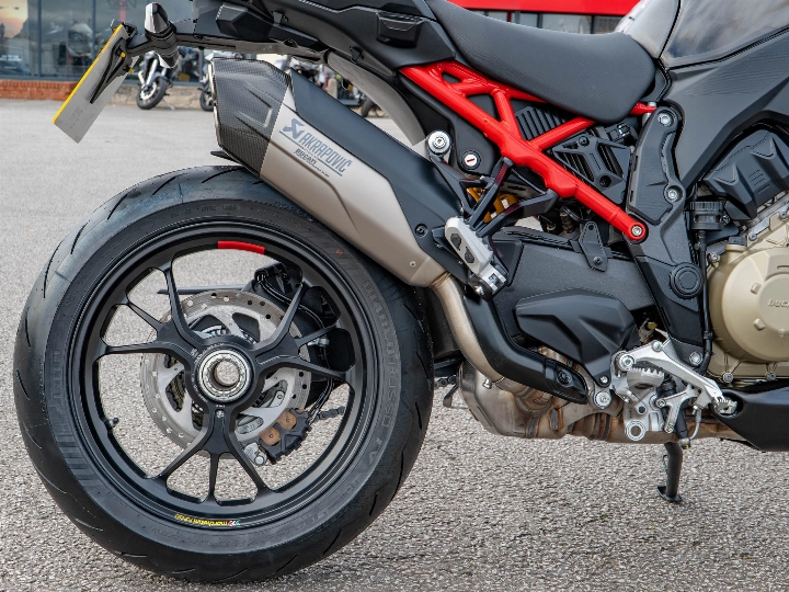 The excitement is enhanced by the factory-fitted Akrapovič Performance Exhaust system, which gives the V4 engine a thrilling soundtrack. The bike features a comprehensive electronic suite with Cornering ABS, multi-level Traction Control (DTC EVO), adjustable Wheelie Control (DWC EVO), and multiple selectable Riding Modes. Touring and everyday convenience are managed by Keyless Ride, standard Cruise Control, a rear Grab Rail, and Hand guards. For a cleaner, aggressive rear profile, this bike is also fitted with a neat Tail Tidy.
