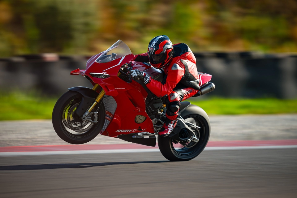 Riding the Panigale V4 R is the closest experience a civilian can have to piloting a factory-spec race bike. It is powered by the 998cc Desmosedici Stradale R engine, which is smaller than the standard V4 to comply with racing regulations but significantly more powerful. Producing a staggering 218 hp in its standard form, the engine features titanium connecting rods and intake valves, allowing it to scream to a dizzying 16,500 rpm. The power delivery is immediate and relentless, supported by a race-spec gearbox that places neutral below first gear to prevent accidental shifts during aggressive track riding.