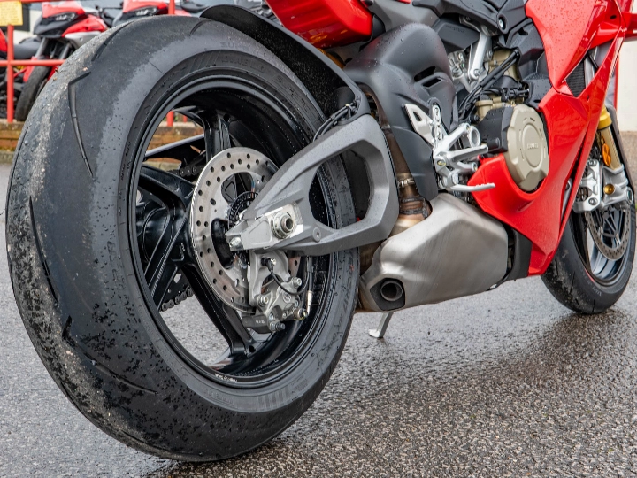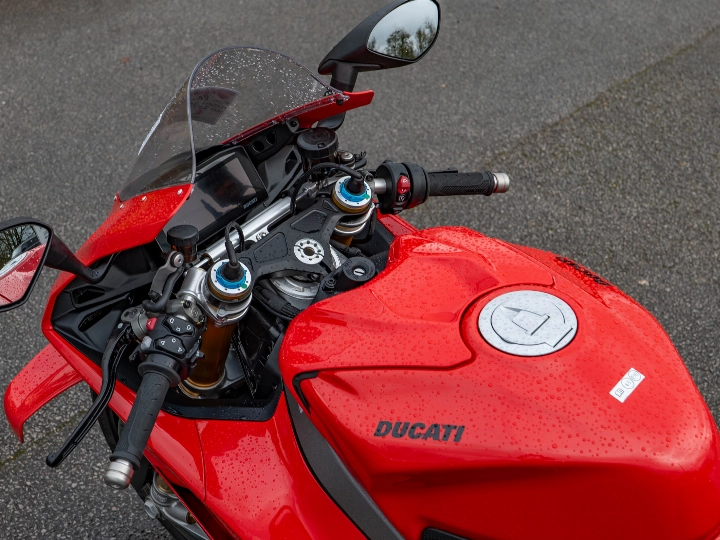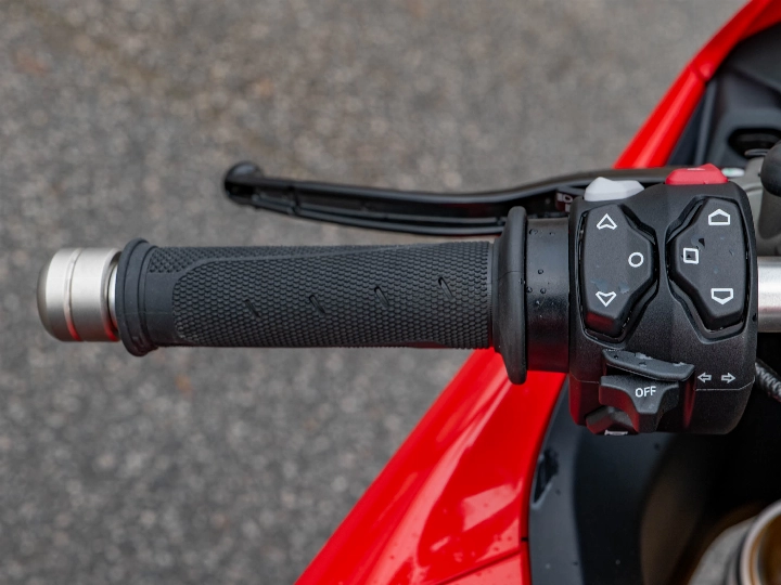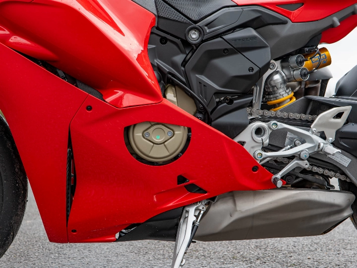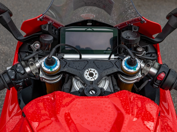 Riding the Panigale V4 S is an visceral experience that few other motorcycles can match. It is powered by the 1103cc Desmosedici Stradale V4 engine, which produces a staggering 216 hp. The power delivery is controlled by a state-of-the-art electronics suite, including the latest generation of traction control, wheelie control, and slide control, all managed through a high-resolution dashboard. The feel of the bike is defined by its new integrated winglets and a redesigned chassis that improves front-end feel and stability under hard braking. Whether on a fast track day or a spirited road ride, the V4 S offers a level of mechanical and electronic sophistication that is simply world-class.