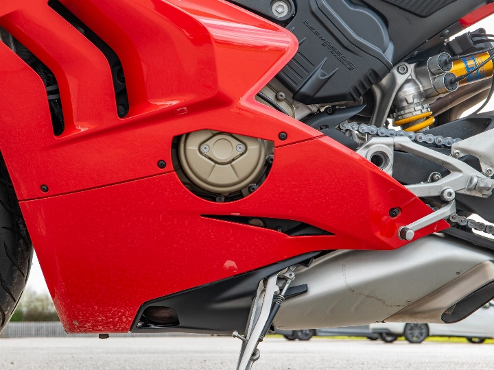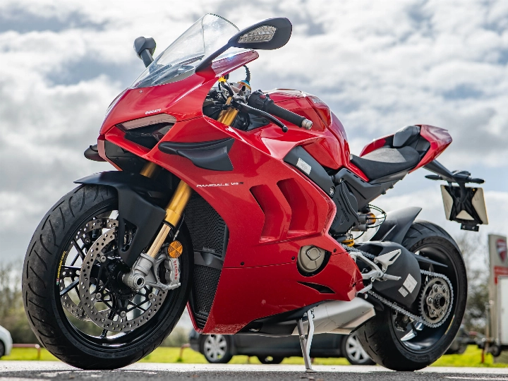 This particular Panigale V4 S comes with a full service history and has been further enhanced with practical upgrades, including Evotech radiator guards and a tank pad to protect the Red bodywork. The rider is supported by a world-class electronics suite, including cornering ABS, traction control, and a bi-directional quickshifter, all managed through a high-definition TFT display. Riding this bike is a visceral experience; it offers the raw speed of a MotoGP bike but with the refined chassis and "Front Frame" updates that make it more user-friendly for road riders.