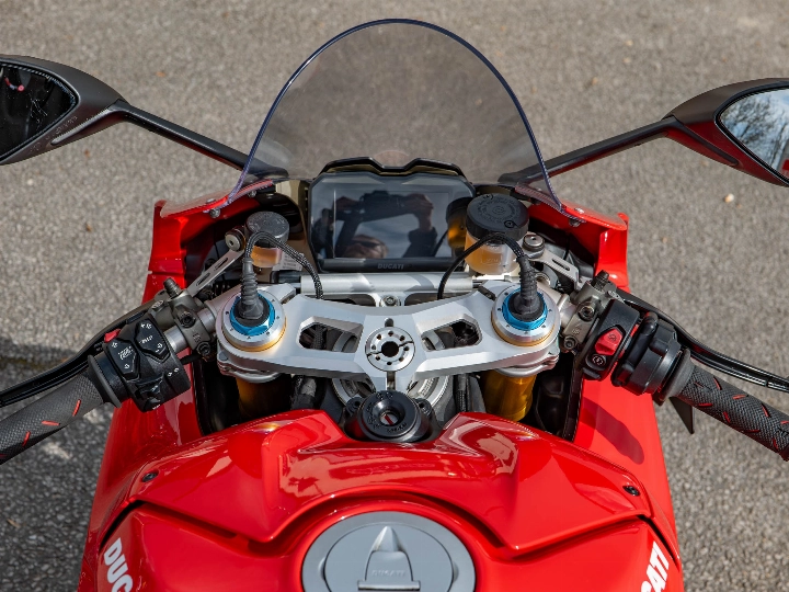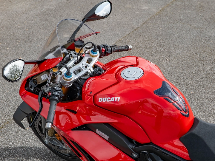 Powering this 214 hp machine is the 1103cc Desmosedici Stradale V4 engine, which utilizes a counter-rotating crankshaft to counteract the gyroscopic effect of the wheels, making the bike incredibly agile. The "S" specification is the highlight of the range, featuring the second-generation Öhlins Smart EC 2.0 electronic suspension. This system intuitively adjusts damping in real-time based on your riding style, whether you are attacking a track day or navigating the B-roads.