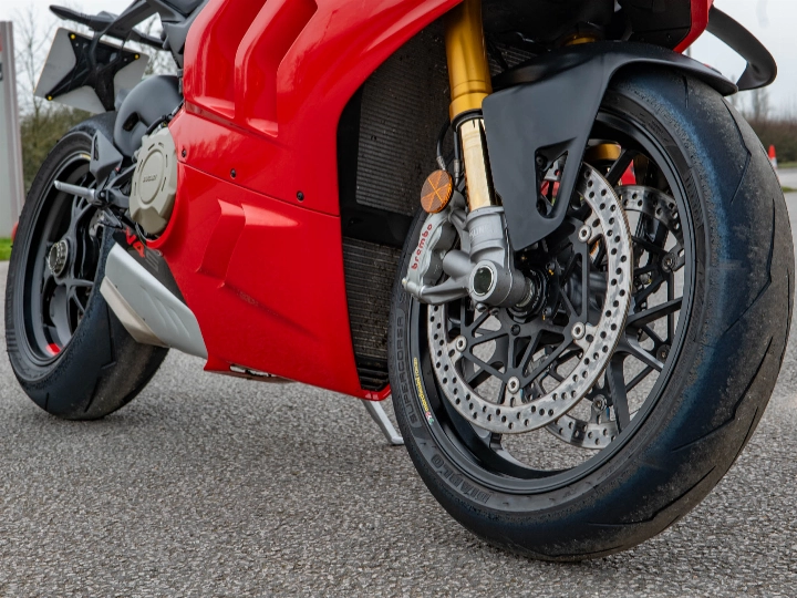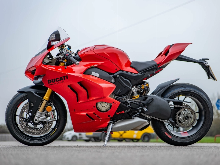 The heart of the V4 S is the 1,103cc Desmosedici Stradale 90° V4 engine, delivering a staggering 215.5 hp with a counter-rotating crankshaft for unmatched agility. For the 2024 model year, the Panigale received significant updates to its electronics and aerodynamics, including revised Power Modes and a "Front Frame" chassis that offers incredible feedback at high lean angles. The "S" designation ensures this bike is equipped with premium Öhlins Smart EC 2.0 semi-active suspension and lightweight forged aluminium Marchesini wheels, which work in harmony to reduce unsprung weight and sharpen every turn.