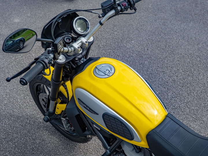 The 2017 Ducati Scrambler Icon delivers a punchy 73 hp at On Yer Bike / Ducati Aylesbury. This 803cc air-cooled engine is famous for its smooth power delivery and iconic desmodromic sound, providing 73 hp that feels urgent and engaging across the rev range. This particular example has been well-equipped for the practical rider, featuring multi-stage heated grips for year-round comfort and a subtle fly screen to improve wind protection during motorway stints.