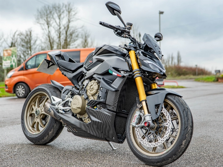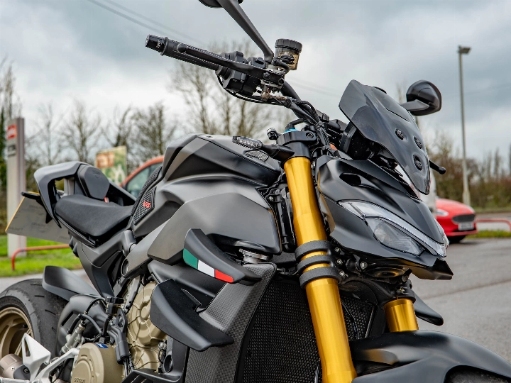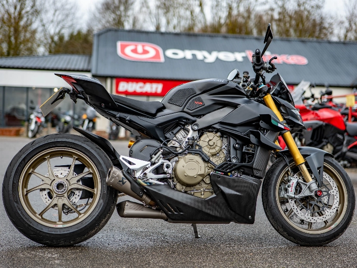 Now available is this absolutely stunning and highly-specified 2022 Ducati Streetfighter V4 S, finished in deep Black. This extreme performance naked machine has covered a low 4,546 miles from new and boasts a comprehensive Full Service History (FSH). This bike is a spectacular example of the "Fight Formula," delivering superbike power in a commanding street package.