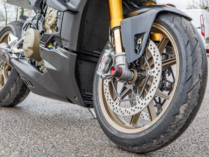 The heart of this machine is the 1103 cc Desmosedici Stradale V4 engine, producing an astounding 208 hp. The performance is magnified by a magnificent Full Akrapovič Exhaust System, which not only increases power but also delivers a phenomenal soundtrack. As the 'S' model, it comes factory-fitted with premium, semi-active Öhlins Smart EC 2.0 suspension and lightweight Magnesium Forged Marchesini Rims, ensuring razor-sharp handling and precision.