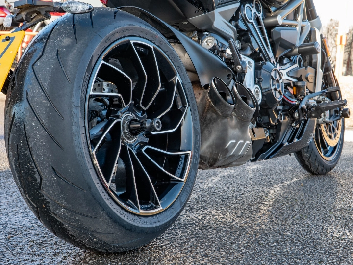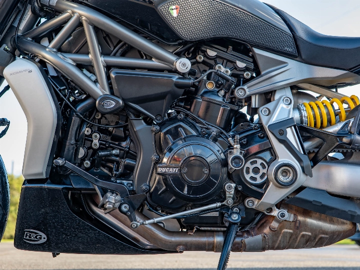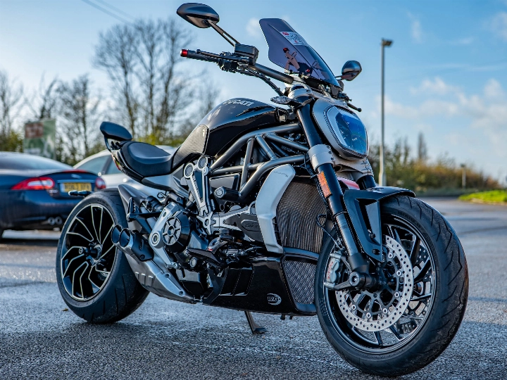 The heart of the XDiavel S is the incredible 1,262cc Testastretta DVT (Desmodromic Variable Timing) L-Twin engine, which delivers a massive 156 hp and immense, useable torque right from low RPM. This engine is designed to cruise effortlessly yet deliver exhilarating performance on demand. Power is transmitted through a smooth six-speed manual transmission via a maintenance-free belt drive. As the flagship 'S' model, it features a premium finish with gloss black paint, unique machine-finished alloy wheels, and a full TFT colour display.
